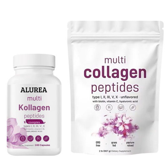 Multi Kollagen unterstützt deinen Körper von innen – mit 5 Kollagen-Typen, Biotin, Vitamin C & Hyaluronsäure.