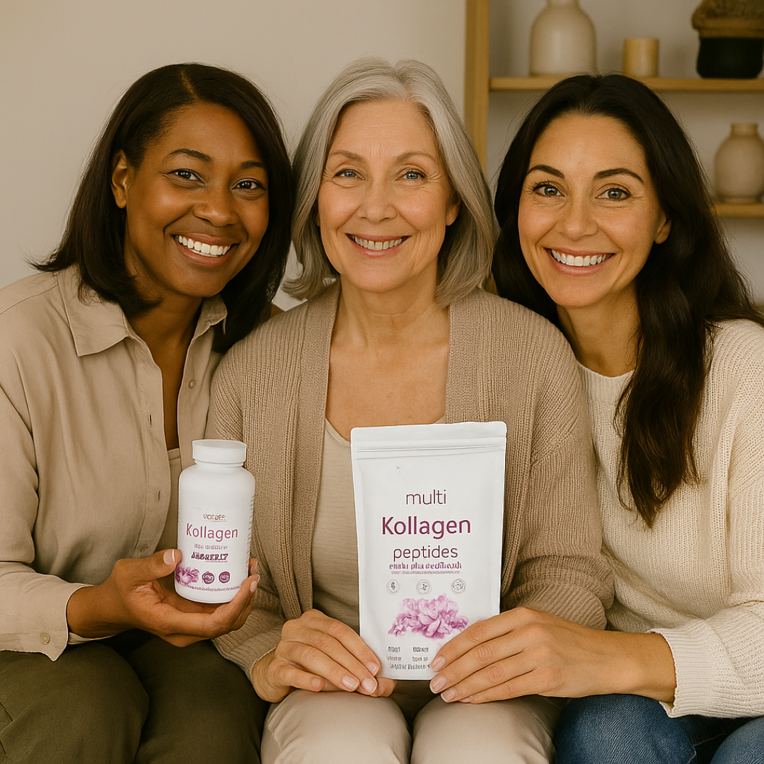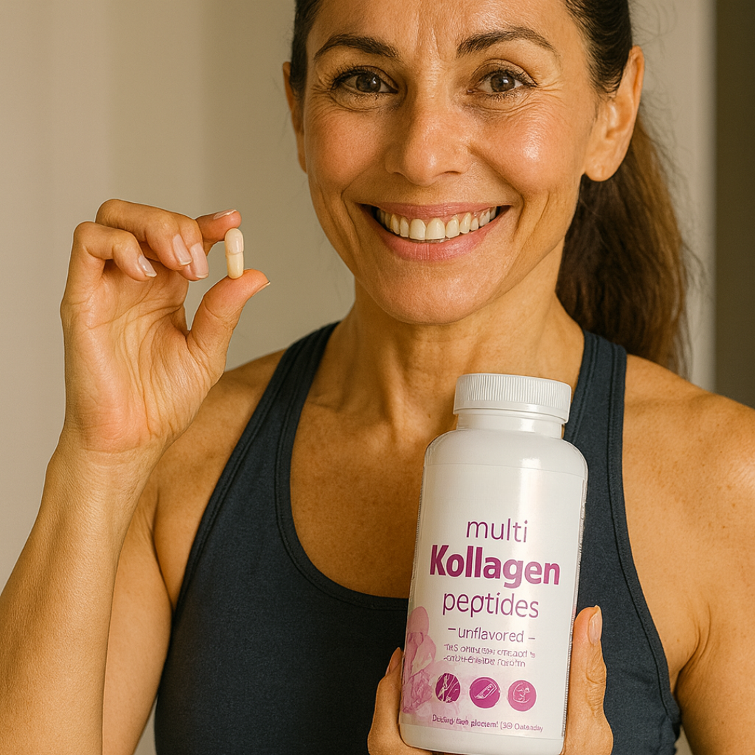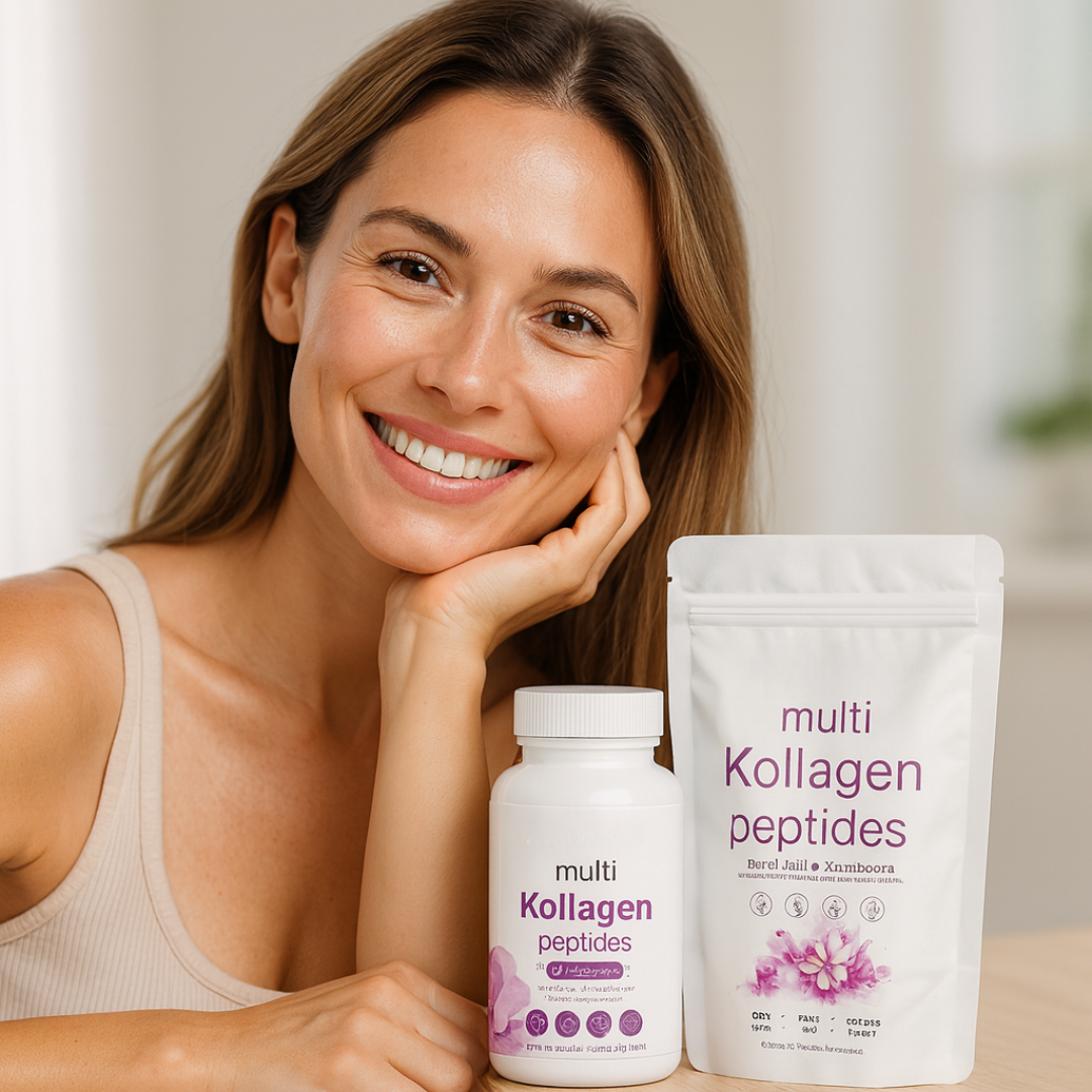 Multi Kollagen unterstützt deinen Körper mit 5 hochwirksamen Kollagen-Typen, Biotin, Vitamin C & Hyaluronsäure – für glatte, straffe und strahlende Haut von innen heraus.